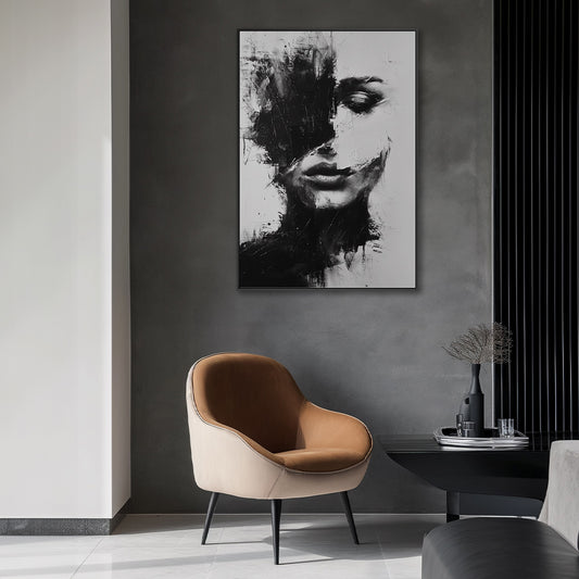 Quadro Busto Mulher Tela em Tecido Moldura 3D Preta - Grande 80x120cm