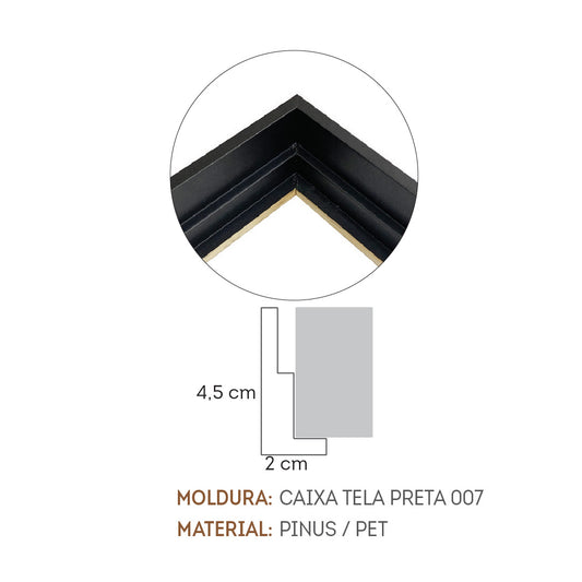 Quadro Boho Abstrato Tela em Tecido Moldura 3D Preta - Grande 80x100cm