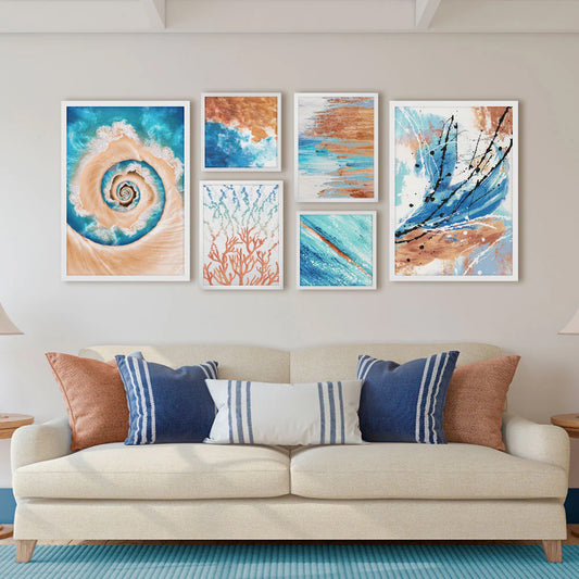 Quadro Mar em Espiral com Vidro Moldura Branca - Médio 50x70cm