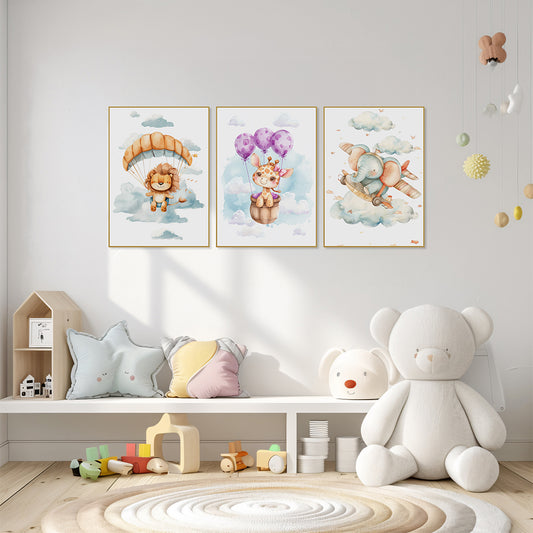 Quadro Infantil Elefante Tela Fosca Moldura Amadeirada - Pequeno 32x42cm