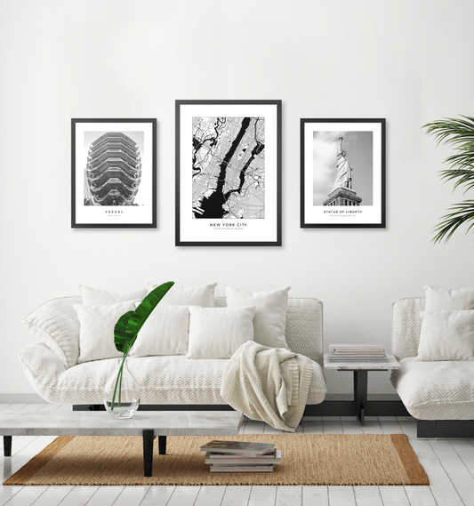 Quadro Cidade Nova York Tela Fosca Moldura Preta - Médio 50x70cm