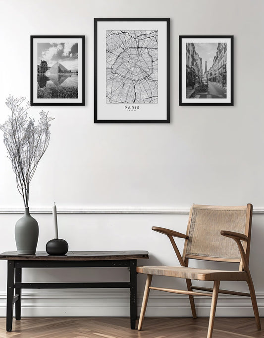 Quadro Paris França Tela Fosca Moldura Preta - Médio 50x70cm