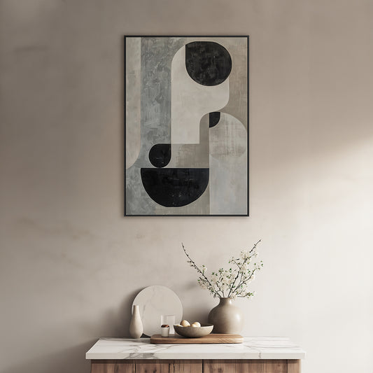 Quadro Boho Abstrato Tela em Tecido Moldura 3D Preta - Grande 80x100cm