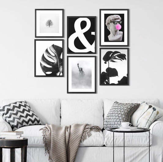 Quadro Pássaros Preto Branco Tela Fosca Moldura Preta - Pequeno 30x30cm