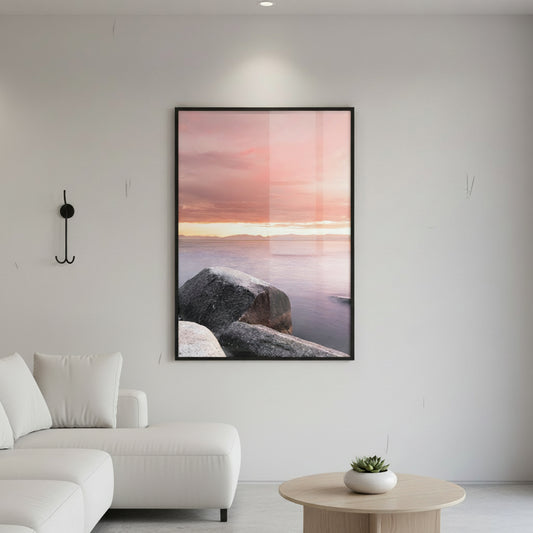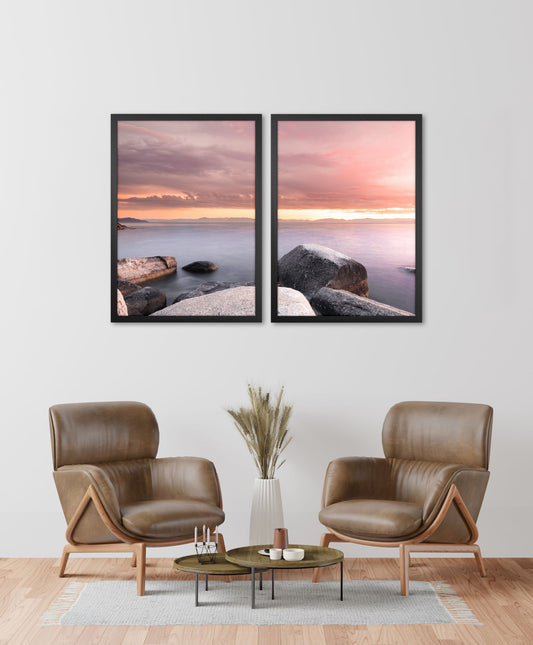 Kit 2 Quadros Céu e Mar com e sem Vidro Moldura Preta - Médio 50x70cm