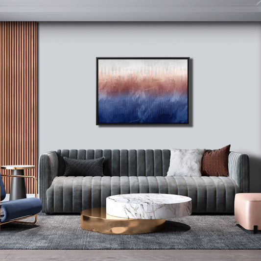 Quadro Abstrato Azul com e sem Vidro Moldura Amadeirada - Médio 94x34cm