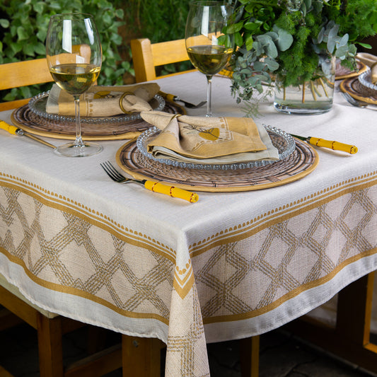 Toalha de Mesa Quadrada Dunas Ikat Bege 4 Lugares 140x140