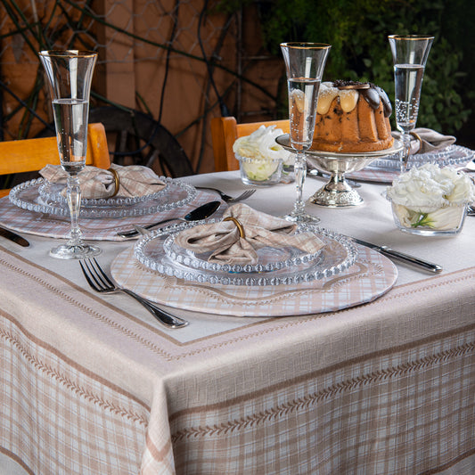 Toalha de Mesa Quadrada Xadrez Bege 4 Lugares 140x140