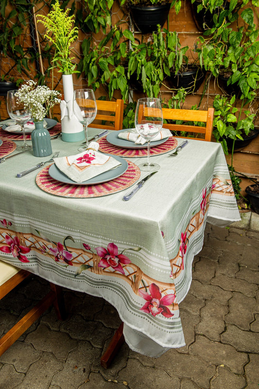 Toalha de Mesa Retangular Orquídeas 6 Lugares 140x220
