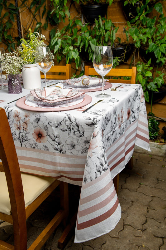 Toalha de Mesa Quadrada Floral Rosê 4 Lugares 140x140