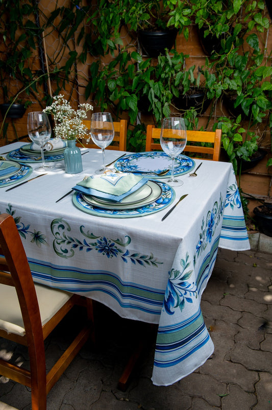Toalha de Mesa Retangular Floral Azul 8 Lugares 140x270