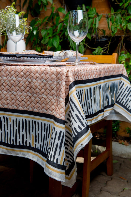 Toalha de Mesa Retangular Bogolan África 8 Lugares 140x270