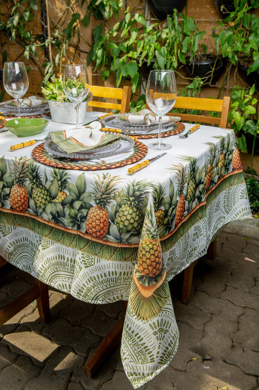 Toalha de Mesa Retangular Abacaxi Tropical 8 Lugares 140x270