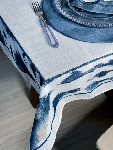 Toalha de Mesa Retangular Ikat Azul 8 Lugares 140x270