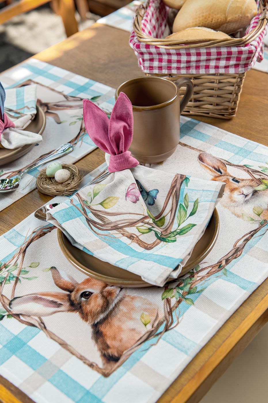 Kit 2 Guardanapos Páscoa Ramos Xadrez Linho 40x40 + 2 Orelinhas