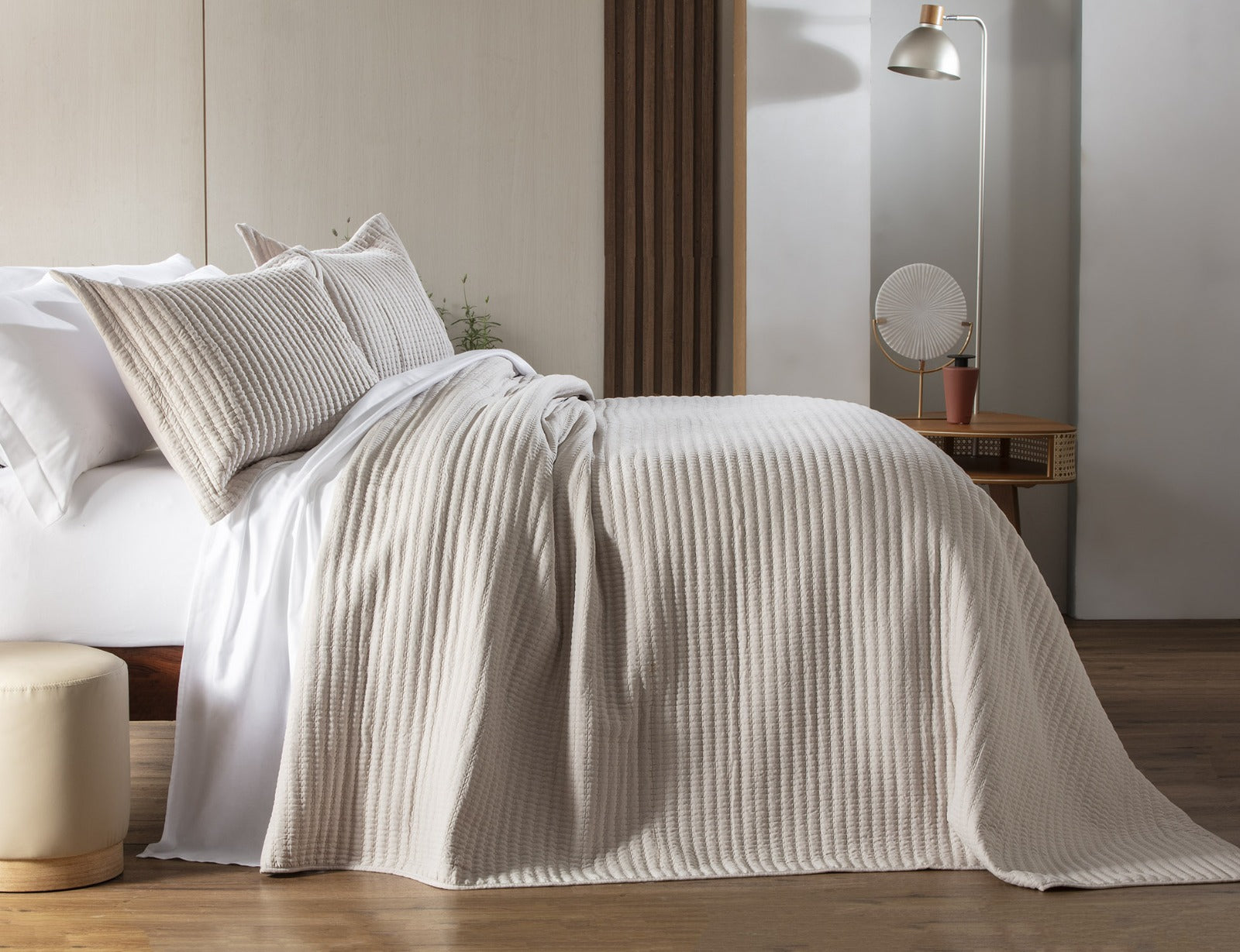 Além de oferecer um toque de luxo e estilo, o Kit Colcha Cobre Leito Queen 3 Peças Belton proporciona conforto durante o sono, com um acabamento que valoriza o ambiente e oferece a maciez que você merece!
