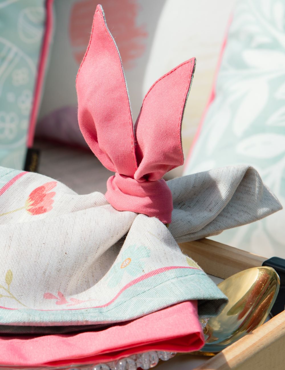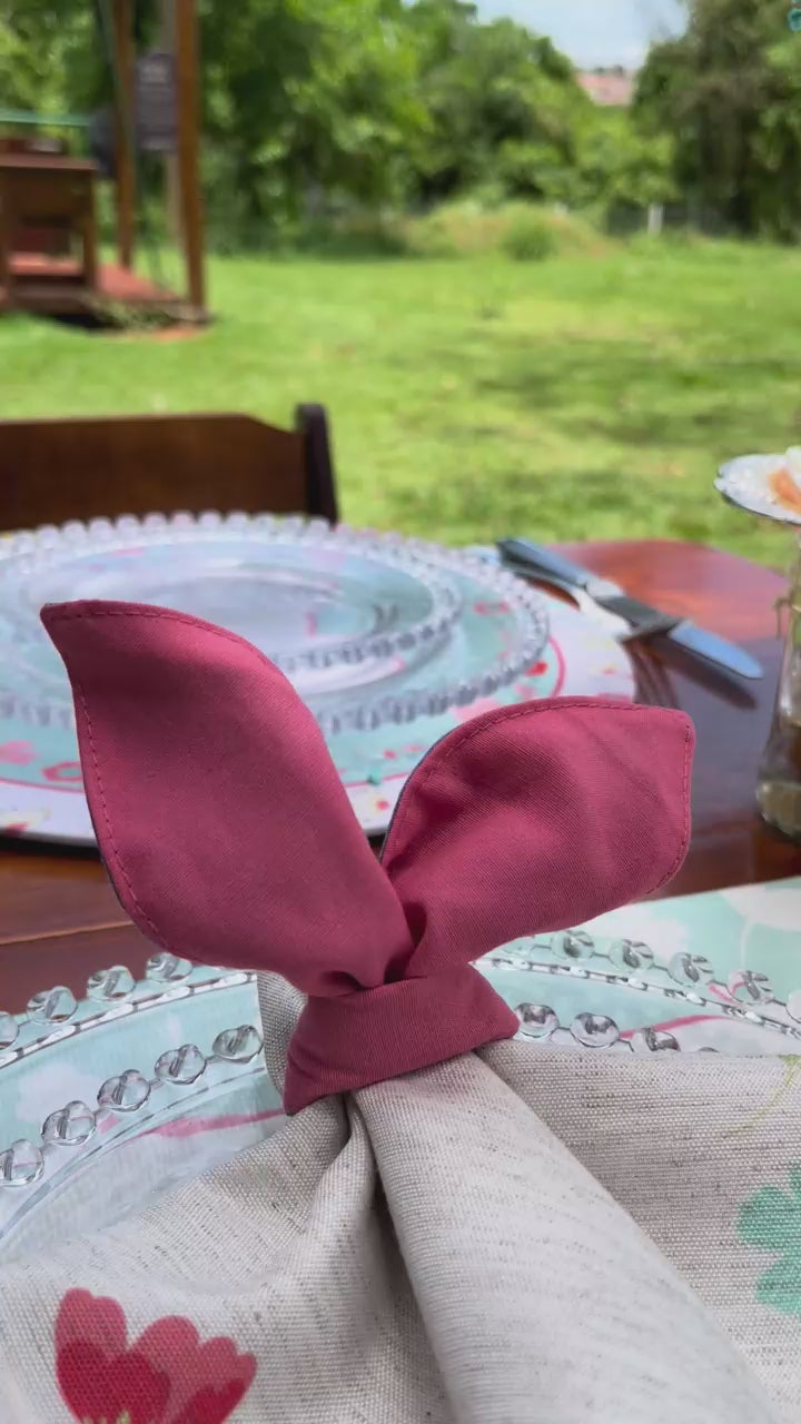 Contém: 2 guardanapos de tecido tricoline + 2 Anéis com orelinhas de coelho