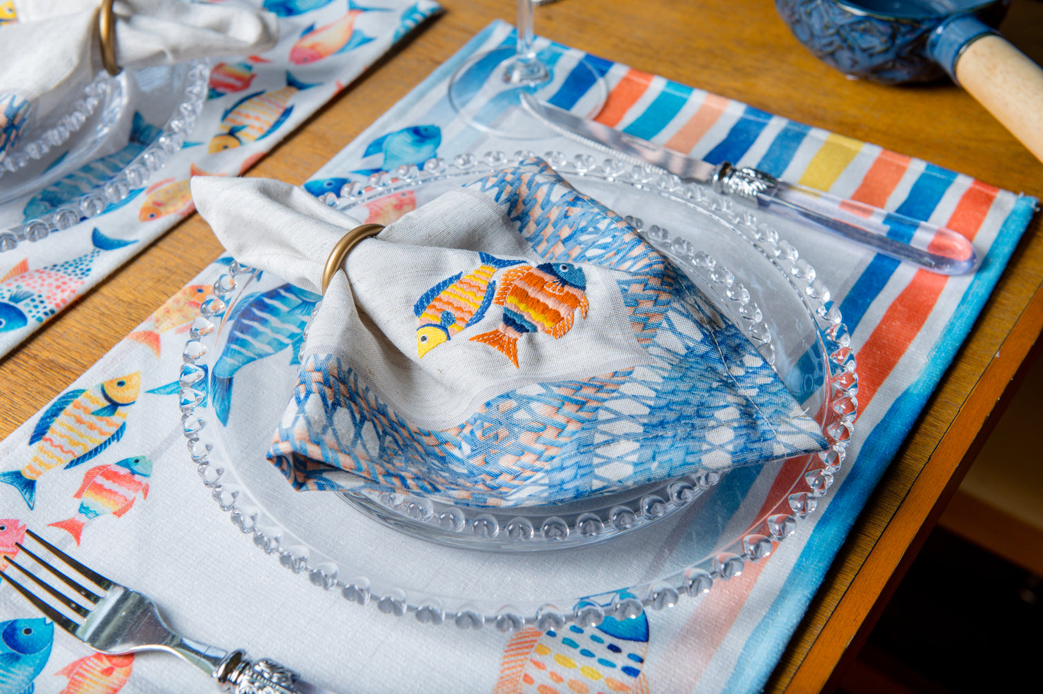 Kit 2 Jogo Americano Acqua Peixes c/ Hidrorrepelência 48x31