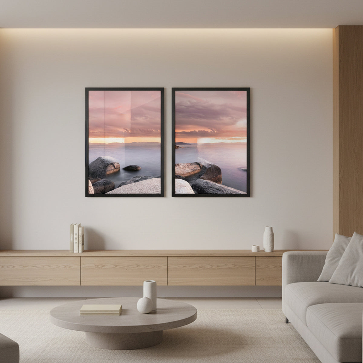 Kit 2 Quadros Céu e Mar com e sem Vidro Moldura Preta - Médio 50x70cm