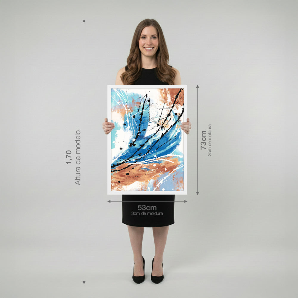 Quadro Abstrato Paradise com Vidro Moldura Branca - Médio 50x70cm