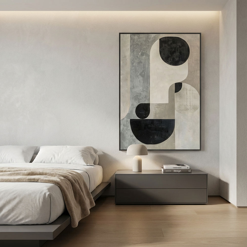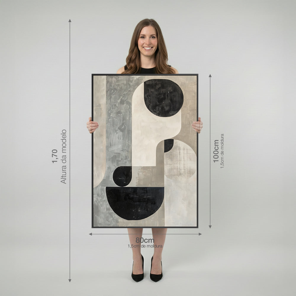 Quadro Boho Abstrato Tela em Tecido Moldura 3D Preta - Grande 80x100cm