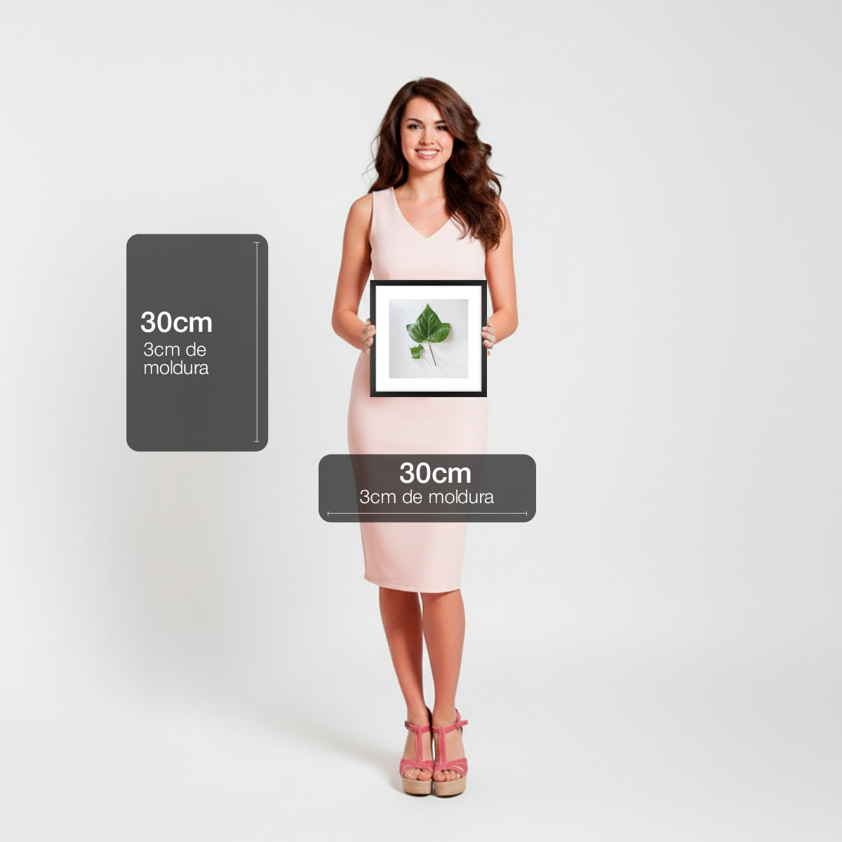 Quadro Botânico Folha Tela Fosca Moldura Preta - Pequeno 30x30cm