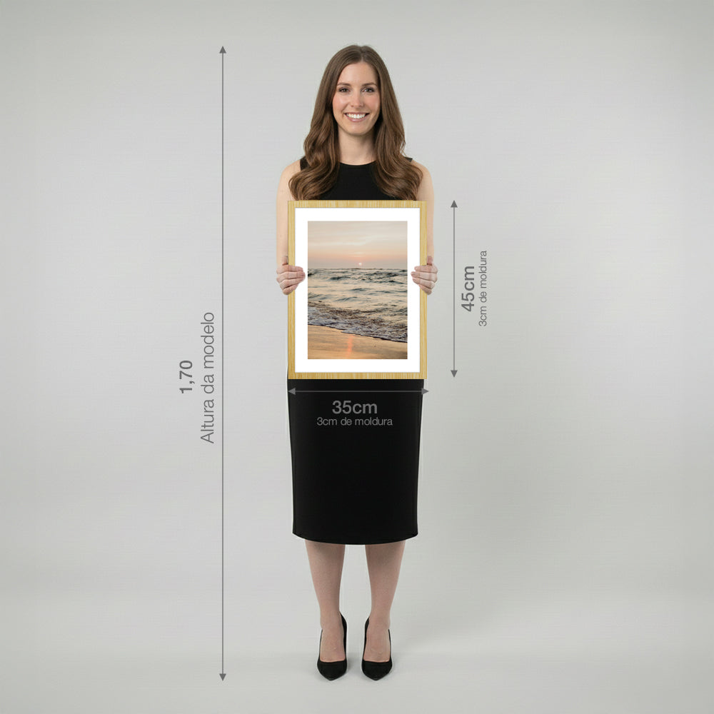 Quadro Céu e Mar Tela Fosca Moldura Amadeirada - Pequeno 32x42cm