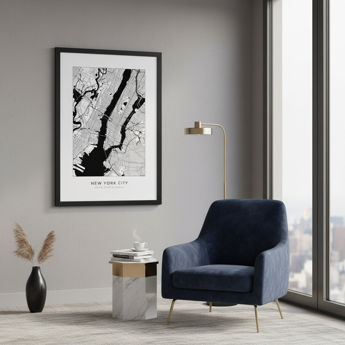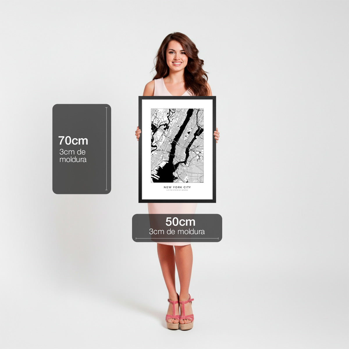 Quadro Cidade Nova York Tela Fosca Moldura Preta - Médio 50x70cm