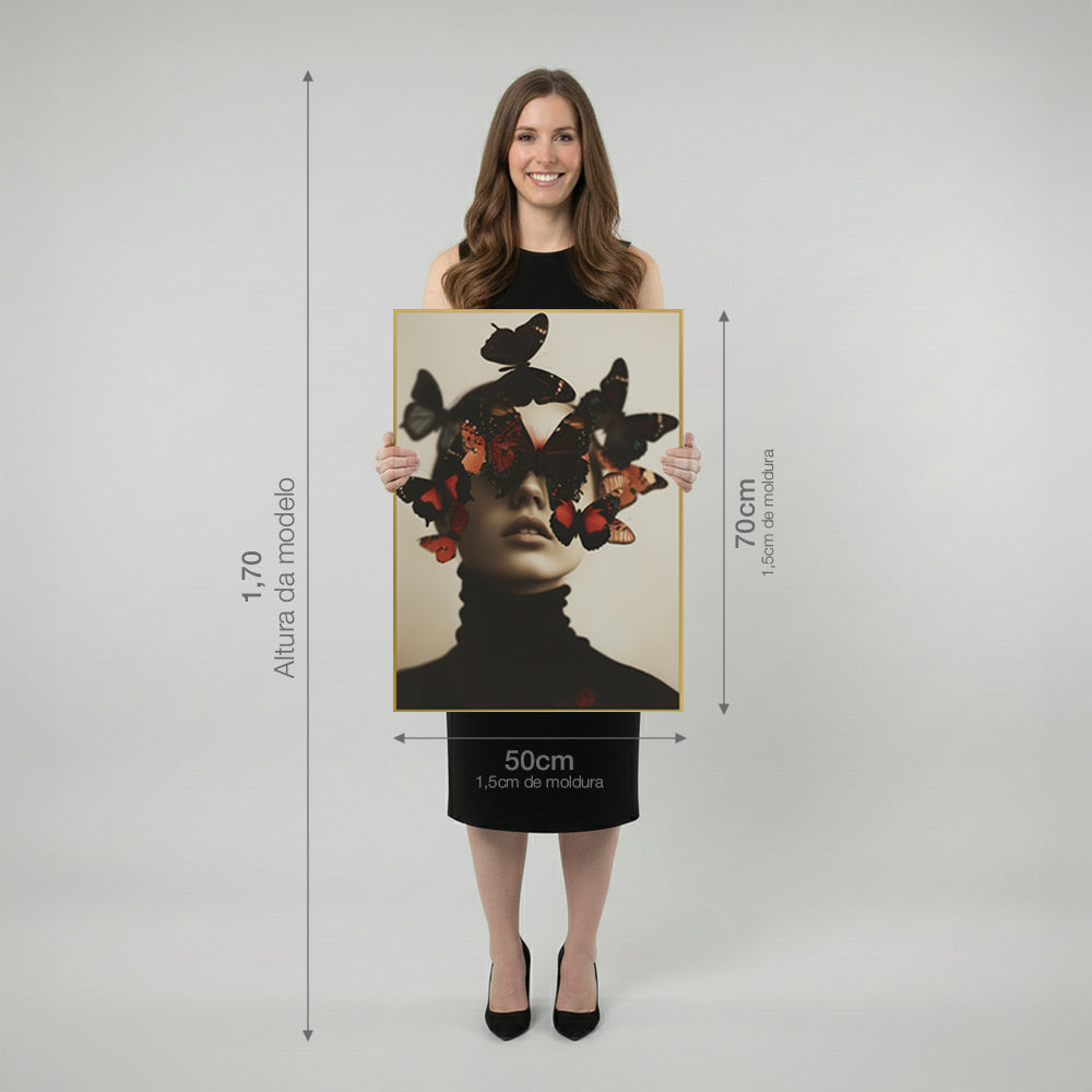 Quadro Mulher e Borboletas com e sem Vidro Moldura Amadeirada - Grande 80x120cm