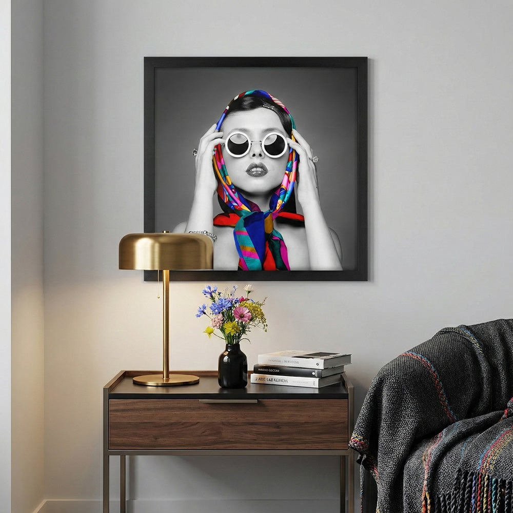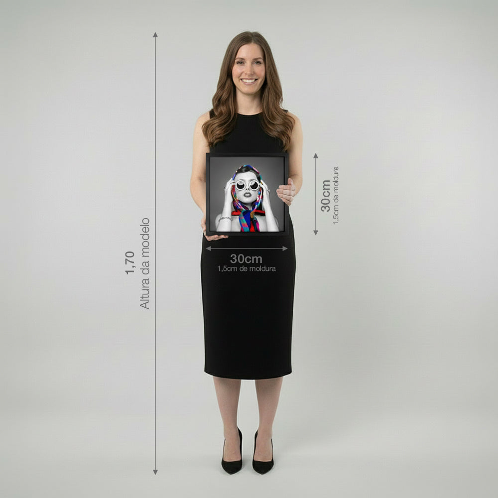 Quadro Mulher Old School com Vidro Moldura Preta - Pequeno 30x30cm