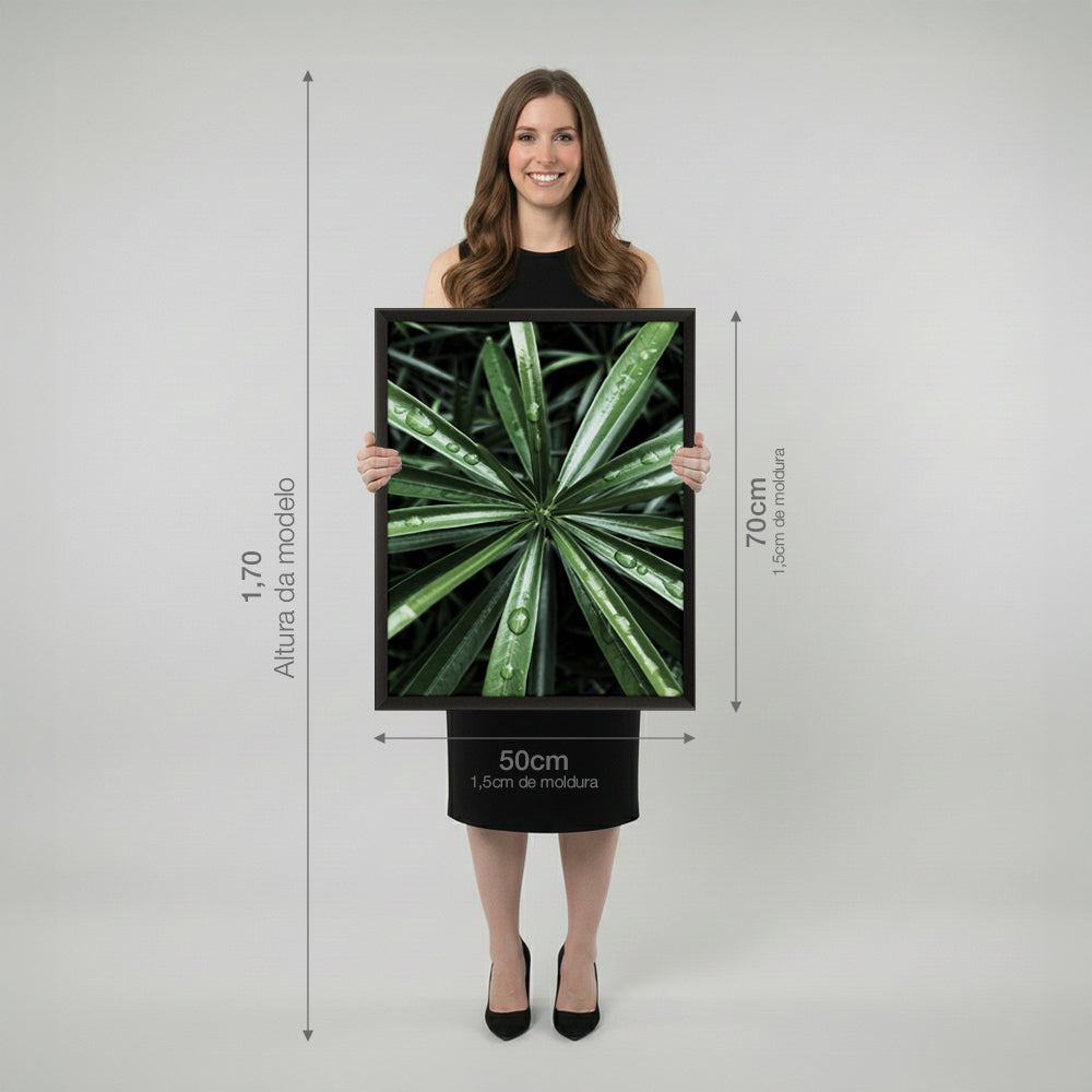 Quadro Planta c/ Gotas de Água com e sem Vidro Moldura 3D Preta - Médio 50x70cm
