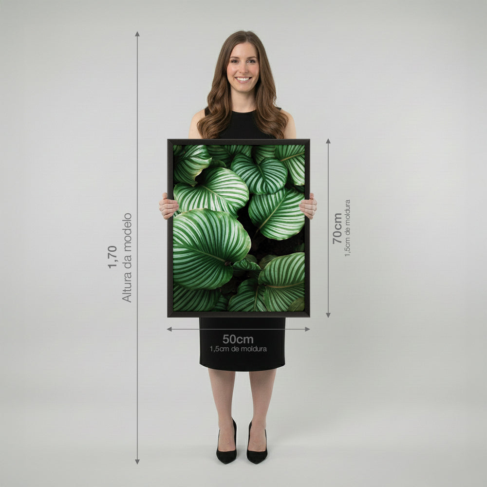 Quadro Planta Folhas Coração com e sem Vidro Moldura 3D Preta - Médio 50x70cm