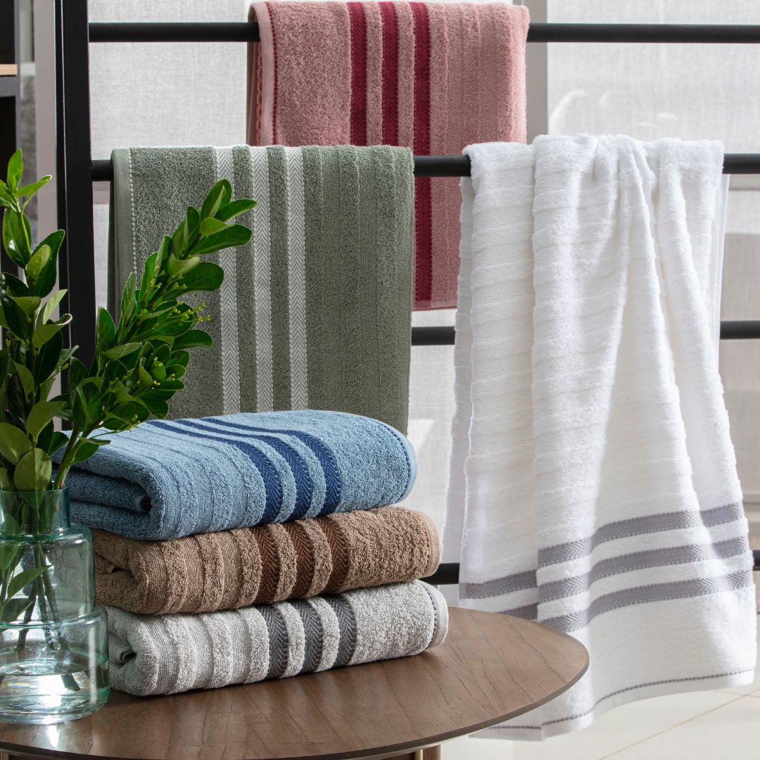 Confortável e suave, com qualidade e sensação superior. Com tonalidades intensas e um barrado trabalhado em listras, esta toalha é ideal para elevar o nível de sofisticação do seu banheiro.